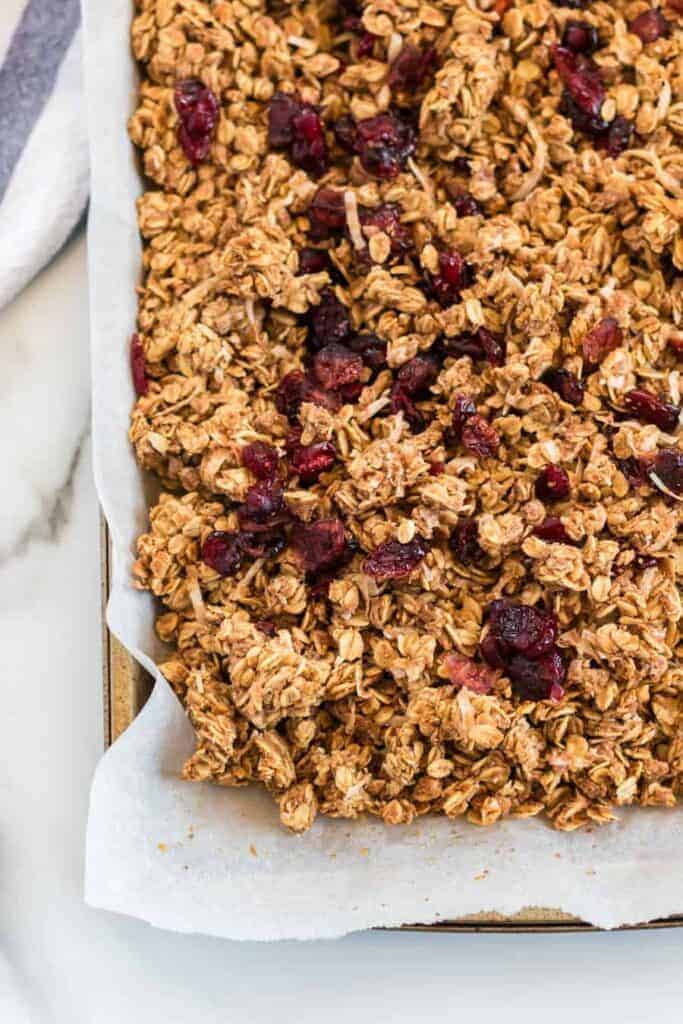 Oftentimes, it actually is cheaper to make your own granola. You’ll have to buy more ingredients at first, but you may already have a lot of ingredients needed in this recipe on hand. Over time, it makes a lot more sense for those who are budgeters to make your own large batches of granola rather than spending 12 bucks over and over again on a pretty shrimpy-sized bag from the grocery store.