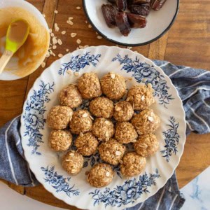 To make these bites nut-free, simply swap the peanut butter for sunflower seed butter or tahini for a nut-free version that’s still packed with healthy fats and protein.