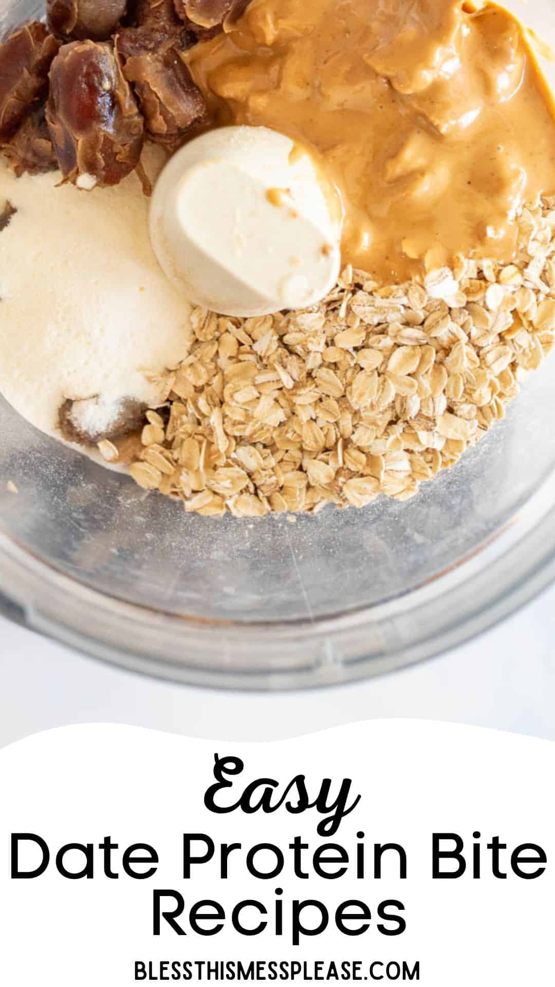 - Add the peanut butter, oats, protein powder, salt, and vanilla.