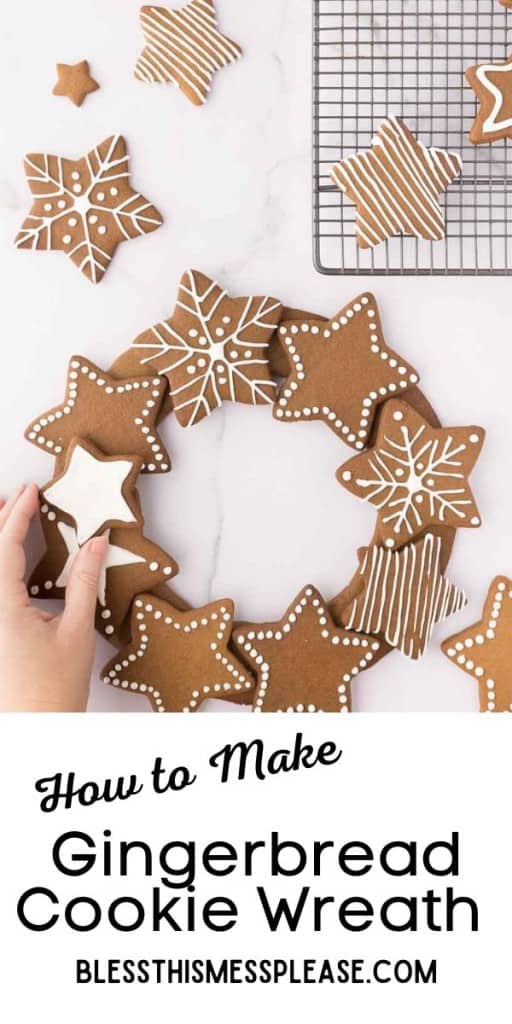 - Once your cookies and wreath are baked and cooled, you are ready to decorate. I like to use a basic white icing to decorate gingerbread cookies. It looks simple yet elegant.
