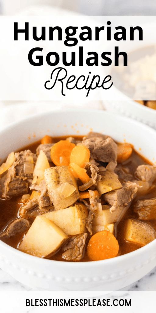 Hungarian Goulash is the perfect dish for the fall and winter seasons because it is hearty, cozy, and warm! I love a good chunky stew, and this recipe blows the other ones out of the water. The pieces of beef are so tender they melt in your mouth. Meanwhile, chewy carrots and potatoes add a wonderful contrasting texture. The base of this goulash is a thickened and spiced broth that is authentically flavored with tons of paprika.